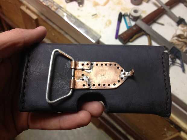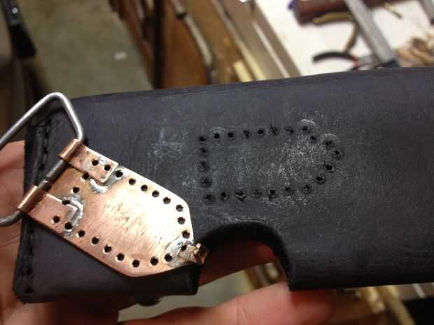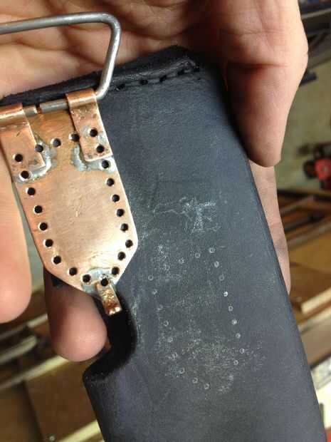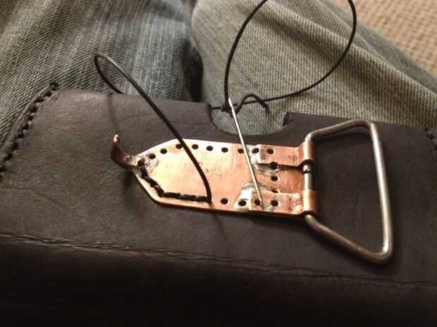 Hay muchas herramientas disponibles para hacer los agujeros de la puntada. De golpes a los cinceles Leznas, pero no han ninguna de esas herramientas, usé un taladro con la broca de tamaño mismo bit como en la hebilla.
