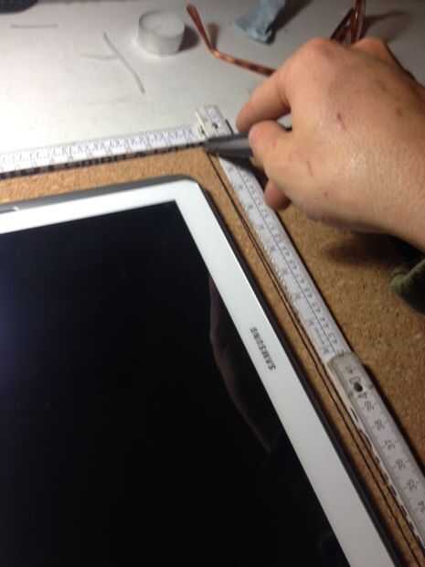 Vamos a cortar la parte de atrás. Para esto saludando una base de corcho