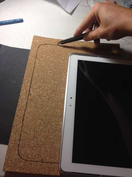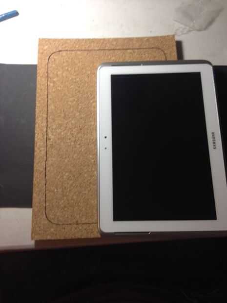 En una segunda pieza de corcho, marcamos el perímetro del Tablet,