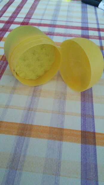 Obtener la esponja y cortar en una plaza. Luego presione el soporte del juguete difícilmente en él. Después de que debería existir un contorno de círculo corta el círculo, pero ser rápido o desaparecerá (el círculo). Cuando se corta su antiguo superior de la botella y pop en la parte inferior la mitad del soporte del juguete. Entonces el círculo esponja pon pegamento alrededor de los lados y colocarlo en el soporte del juguete también. Sugerencia: no presione la esponja hasta la tapa de la botella o el pendiente no se adhieren en.