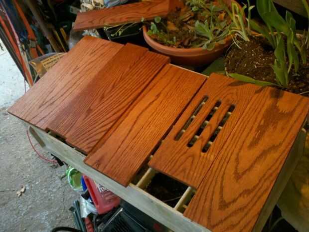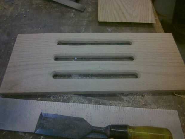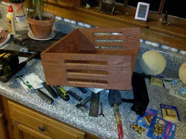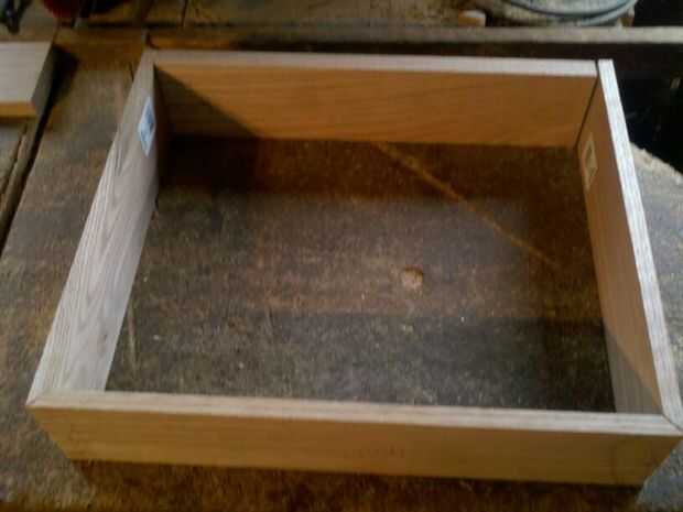 después encontré las dimensiones que necesitaba, corte los tableros en ángulos de 45 grados en el frente y la izquierda que les descarga en la parte trasera por lo que puede añadirse un tirón para arriba la puerta con agujeros de aire.