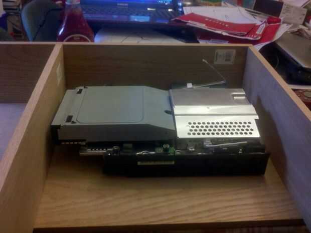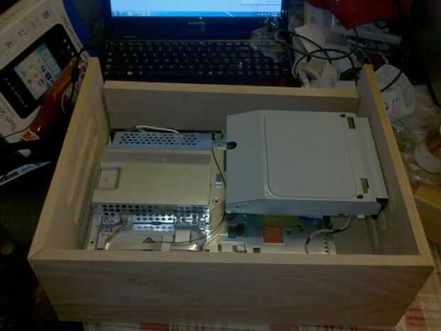 hice los soportes de aluminio para fijar la playstation y había atornillado al piso de la caja.