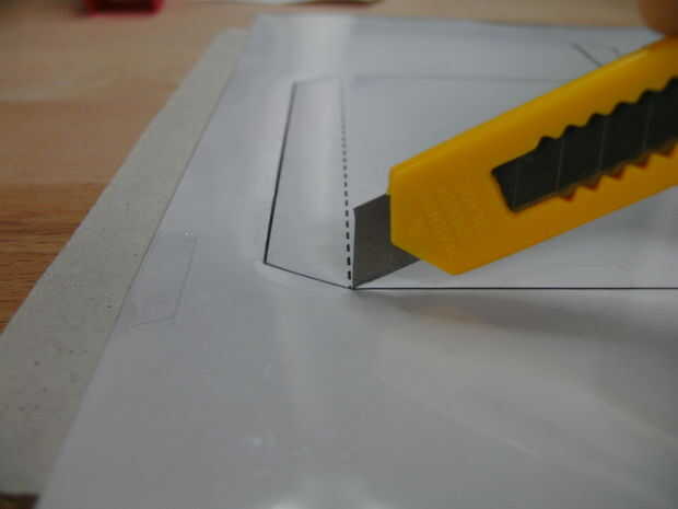 Asegúrese de que poner un trozo de cartón debajo de la plantilla antes de empezar a cortar, porque podría dañar su mesa o todo lo que podría ser por debajo.