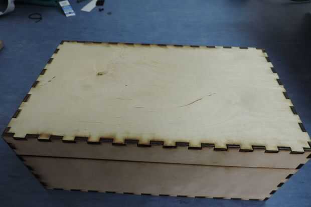 Retirar las piezas acabadas y pasar a una superficie lo suficientemente grande como para poner la base con sus lados. Ahora estás listo para montar. Si usted está utilizando el cartón o la madera, poner los elementos juntos sin pegamento para asegurar usted poner las líneas de corte donde se suponía que. Si todo es grande, proceda a hacer lo mismo para la tapa. Si se trabaja con el corte de madera salidas y todo está bien entonces pasar a la etapa pega o si usted ha utilizado cartón y todo es fino, proceder a través de los pasos para los trozos de madera y proceder a pegar. Mantenga las piezas de cartón si crees que te gustaría construir otro caso. El modelo de cartón le puede ayudar en el diseño de sus modificaciones. Puede considerar el uso final del caso básico en su opción de pegamento.