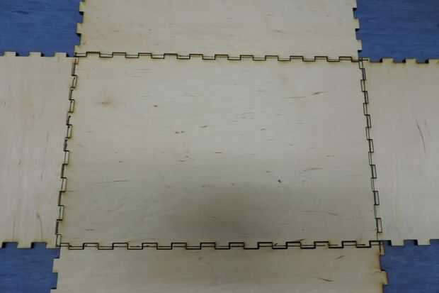 Ordenar las piezas de la base de las piezas de la tapa y reservar la tapa. Coloque la parte inferior de la base en el medio del área de trabajo. Localice los dos lados largos y los ponen a cada lado de la parte inferior de la base con los dedos establece dentro de sus ranuras correspondientes. Hacer lo mismo con los lados cortos. Levantar los cuatro lados y asegúrese de que todo encaja. Puesto que todo debe ser fino, colocar otra vez los lados con los dedos en las ranuras y ejecutar una línea de pegamento alrededor como con marcador negro. Esto asegura que todas las áreas tienen cola pero si se ejecuta la línea de cola con moderación reducirá su limpia para arriba.