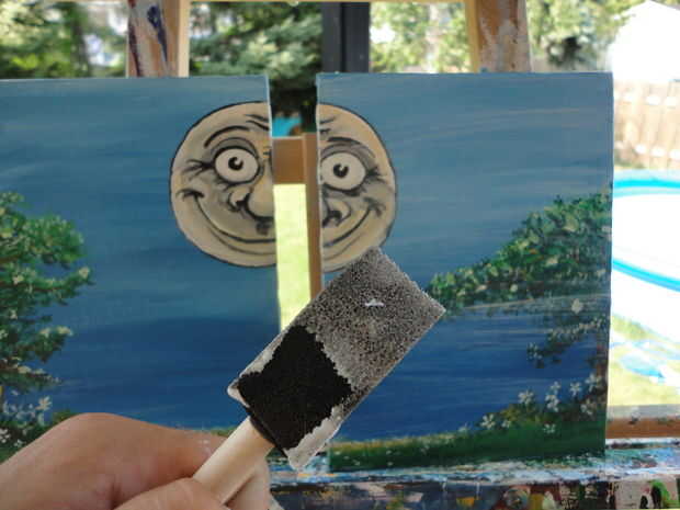 A continuación invierte los lienzos para conseguir mis dos árboles y mi valle. Luego instalar y finalmente había detallada 'Luna Guy cosita'.
