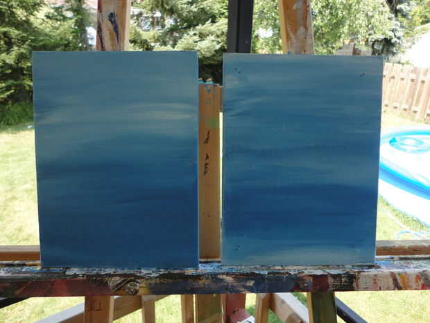 Generalmente empiezo dando mis placas de un color base, en este caso azul. Yo acababa de usar blanco y azul y fui a la ciudad con trazos horizontales, inmersión en azul a veces, blanco otros y solo mezcla y disfrutando del sol.
