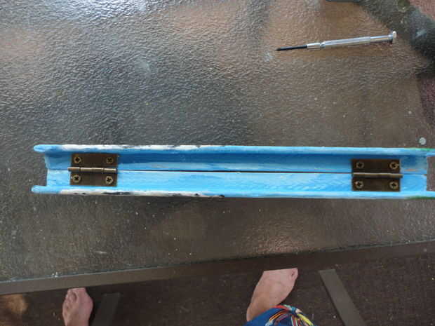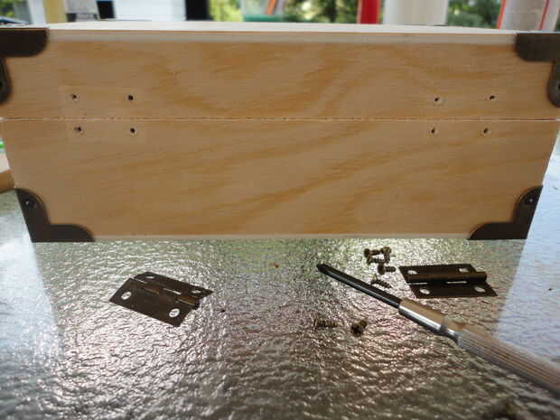 Mientras que se seca en tu obra de arte, puede desmontar la caja del almacén del dólar para conseguir las bisagras.