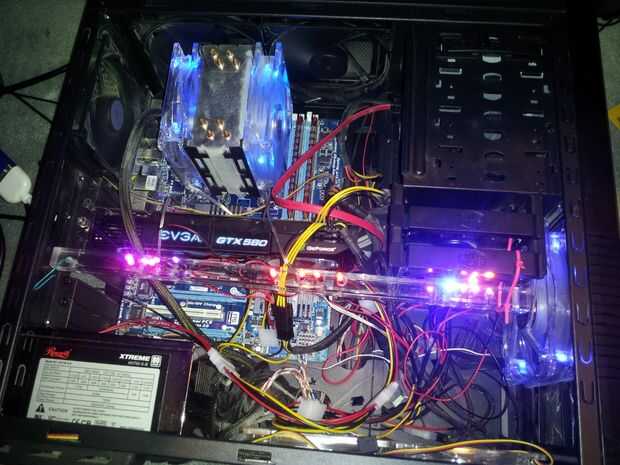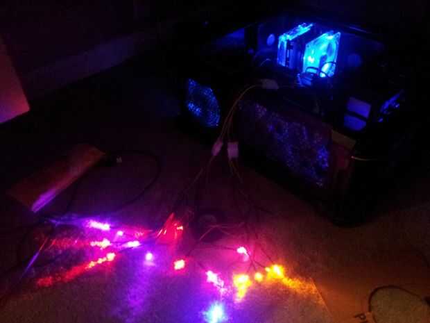 2. después de la soldadura me enchufa los conectores Molex con mis fans y montar el LED.
