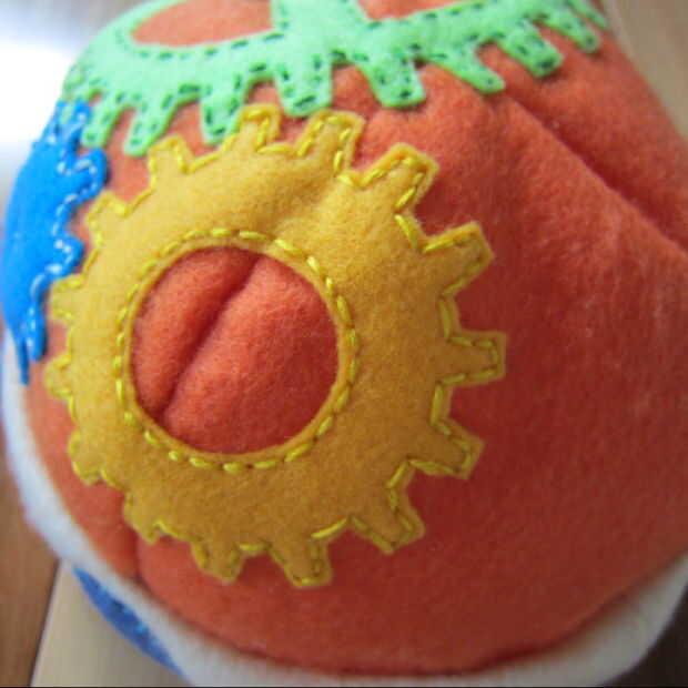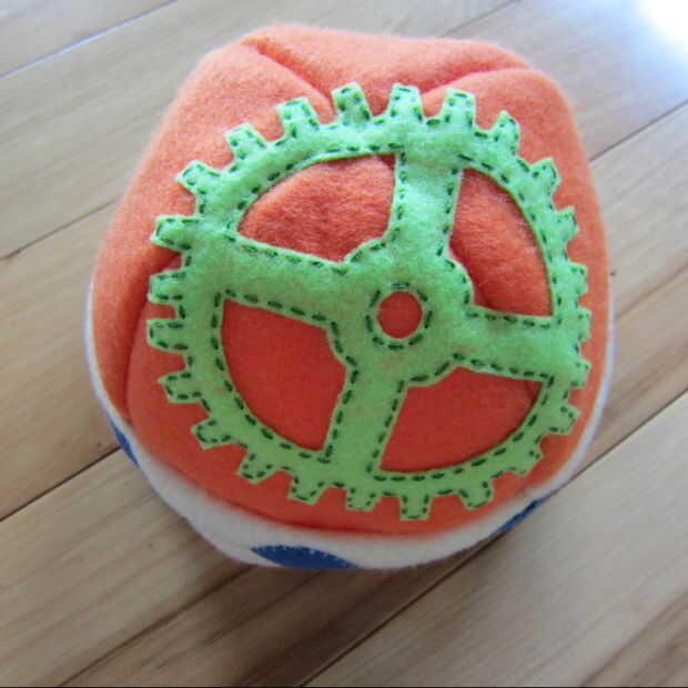 Utilizando engranajes de puntada de hilo bordado en la tapa.
