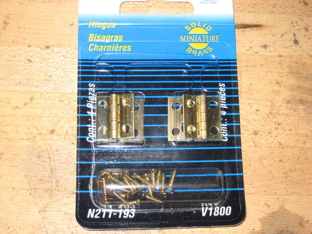 @ 1 pequeña bisagra (creo que el mío era de latón, vino en un pack de cuatro tornillos por $4 USD)