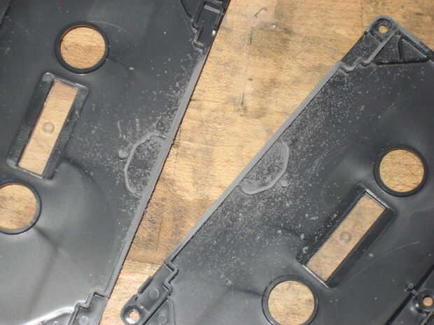 Para que el palo de pegamento caliente real, necesita rugosa hasta la zona que vas a pegar en el. En la parte superior de las mitades del cassette, hasta cerca de donde la etiqueta es / sería ser archivo la zona un poco. También, si usted quiere puede presentar la bisagra pero eso no es lo necesario. Coloque las dos mitades con las tapas de ambos presentados en el interior hacia arriba sobre la anchura de la bisagra de uno a.