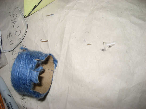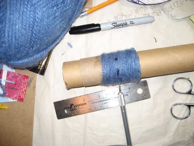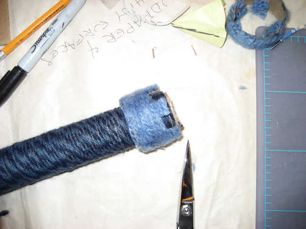 Fabricación de torretas - utiliza un tubo un poco más grande que el de la torre, había cubierta con un montón de cemento de goma, envuelto firmemente con hilo y deje que se seque durante la noche. Cortó una rebanada gruesa, marcada de donde van los recortes y les cortada. Las piezas no utilizadas tienen metidas dentro, y la torreta se desliza sobre la torre. Porque estaban un poco sueltos, envuelven las torres con un pequeño hilo extra del mismo color que las torretas para ocupar el espacio.