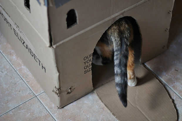 El otro día vino a buscar a mi esposa uno de mi flujo interminable de entrantes Digikey cajas había convertido en una fortaleza para los gatos. Tenía una gran puerta, ventanas, una pequeña puerta trasera e incluso una segunda historia posarse dentro!