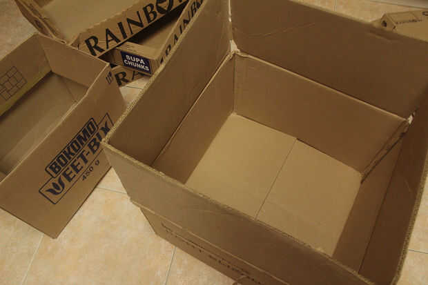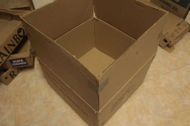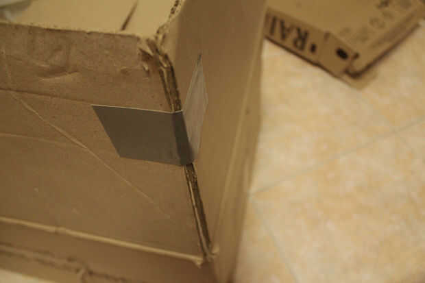Tome su caja grande y tapa abierta, cinta de los lados para formar un cuadro más alto (es decir si quieres un cuadro de taller).
