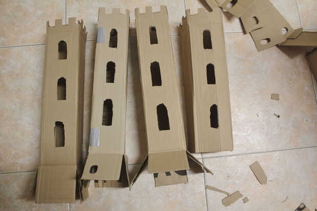 He comprado una casa de gato para poner en mi jardín para mi gatito Enya de una en línea tienda europea. Vino con dos cajas grandes.Hoy llovía (... otra vez...), así que Enya no podía salir en el jardín: me decidí a hacerla un "Castillo de gato"