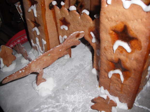 a quien le gusta tener un momento de Hansel y Gretel. Esto está garantizado para hipnotizar a los niños pequeños. Hice mi primera casa de pan de jengibre para Navidad hace unos años, y cada año me gusta levantar la barra. Así que actualicé desde una casa de pan de jengibre a un castillo y la Navidad pasada agregué windows coloreadas. Para Navidad 2012 consiguió más ambiciosa con mis ventanas y tenía que tener dinosaurios de pan de jengibre, atacando el castillo según las instrucciones de mis sobrinos.