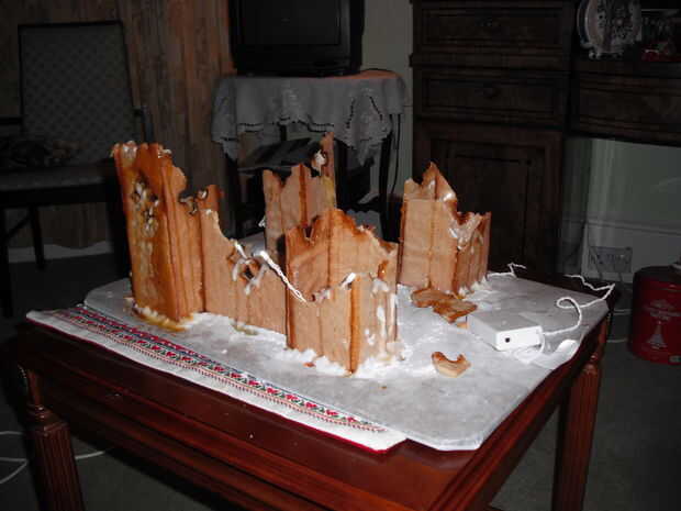 He encontrado que el castillo del pan de jengibre tendrá una duración de aproximadamente una semana. Es en realidad el caramelo-pegamento que primero falle después de un rato empieza a ir un moqueo.