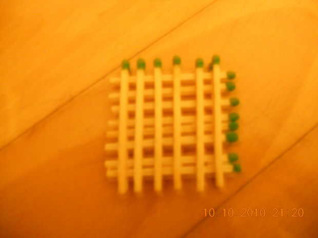 Poner 2 partidos sobre una anchura de combate alejados uno del otro. 8-10 del palillo sobre ellos en una dirección perpendicular, añadir otra capa como esta. El resultado final debe ser esto.