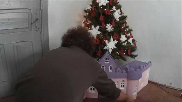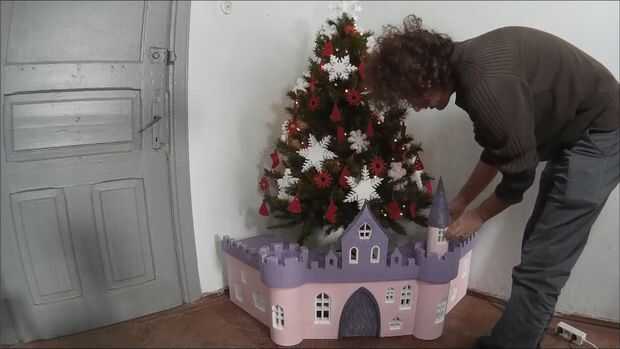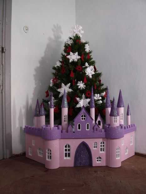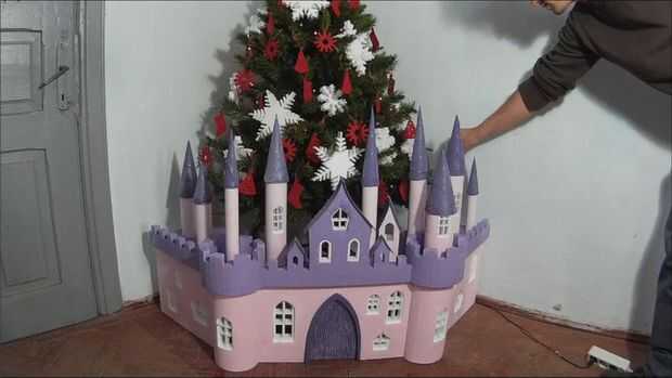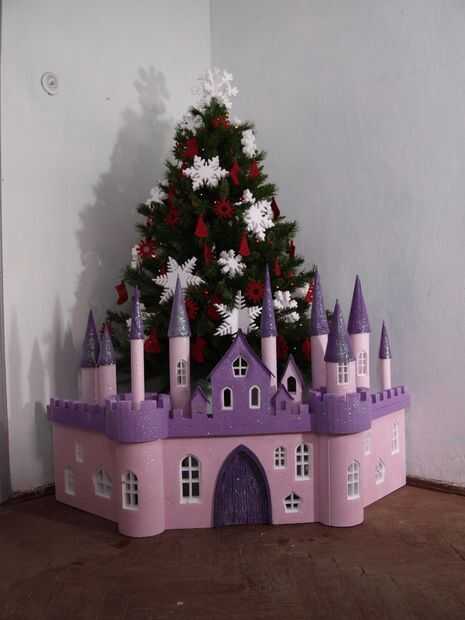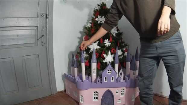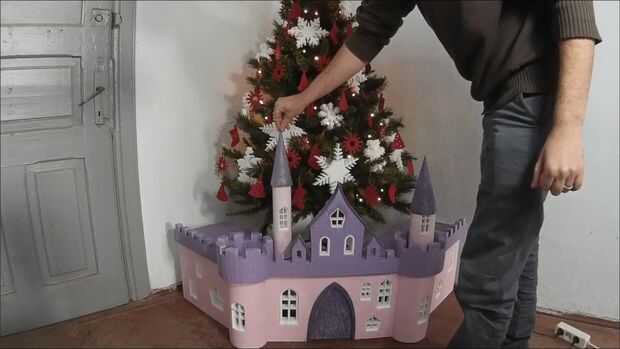 Después de que su árbol de Navidad decorado, con cuidado coloque el castillo en la base y empezar arreglando las torres en el techo. Para fijarlos en su lugar usando alfileres de costura. Puede conseguir un efecto agradable al jugar con luces de dentro del castillo. Por favor voten por mi instructable en el concurso de patrón y tres ingrediente desafío. Gracias