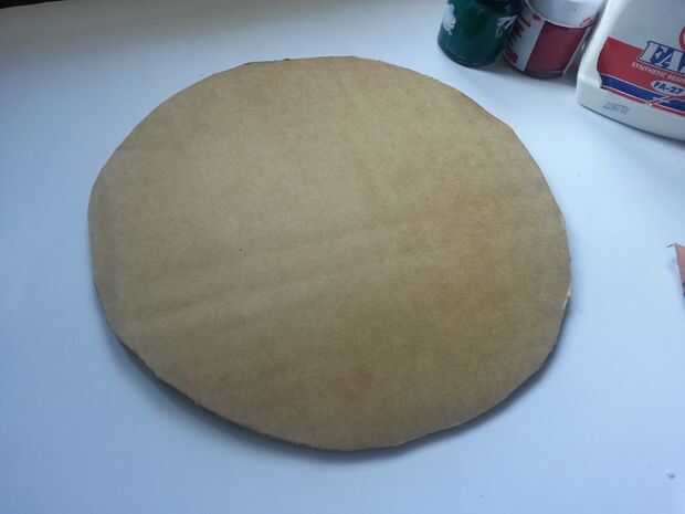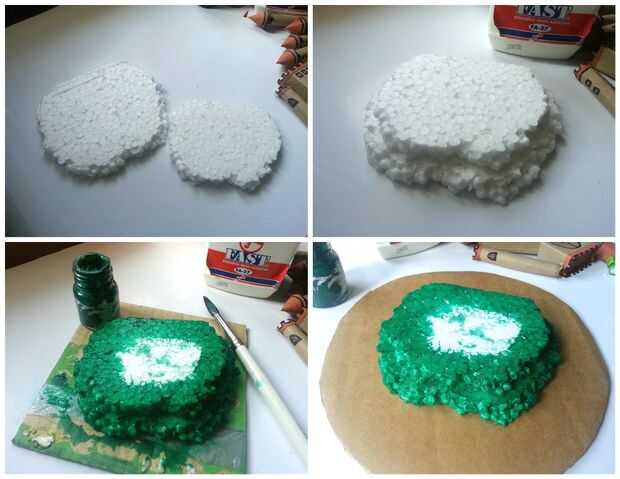 Cortar otra pieza redonda de una hoja de thermocol con una superficie plana y el espacio suficiente para sostener el castillo. Las hojas de thermocol tenía era delgada tenía pegamento 2 piezas para que sea gruesa. Esta pieza de thermocol sería un área montañosa y a colocar el castillo en la parte superior se.