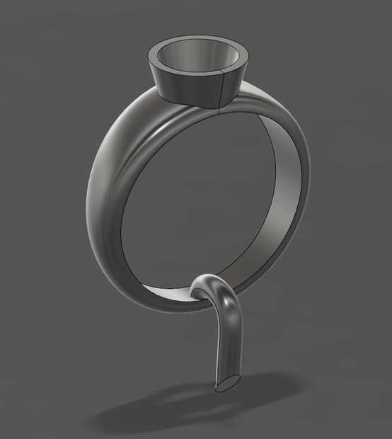 El anillo diseñado tiene una puerta de alimentación de 3,5 mm colocada en el interior de la caña del anillo. Coloqué la puerta comedero su por múltiples razones. En primer lugar, para la producción si quiere hacer un montón de estos poco chicos su mucho más fácil de terminar, moler el interior del anillo que él sería crear la mitad de la superficie redonda del exterior. Cuando se quita material de la zona redondeada riesgo llevándose mucho materiales fácilmente o no remover lo suficiente. En segundo lugar, esta parte del anillo será en la parte inferior y dentro del anillo de la piedra que estéticamente será el punto de dibujo del ojo. Básicamente, usted quiere mantener a su Mona Lisa como su principal atracción y no obstruir si es posible de cualquier inconsistencia.