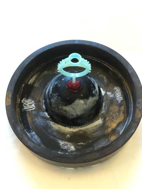 4. este anillo tendrá el esprúe atado a la puerta del alimentador en un ángulo de 45 grados con el ajuste del tubo colocado hacia arriba. De esta manera cuando el modelo se voltea alrededor cuando estamos echando el metal primero fluirá hacia el ajuste del tubo del anillo y luego a través de la caña del anillo en la puerta del alimentador principal.