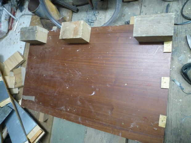 • En primer lugar, clavar dos listones lo ancho en la parte inferior de la base - unos 200mm en de los bordes más cortos. Esto hace más fácil manipular la forma.