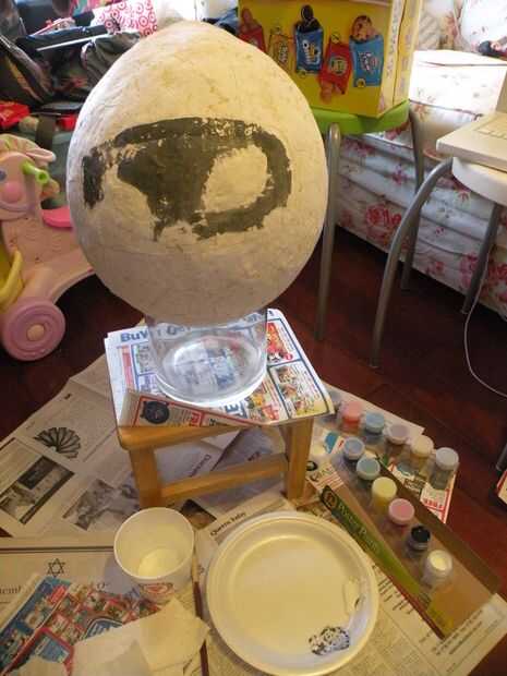 También necesitará al menos 24 horas para que la piñata se seque por completo. Después de hacer una piñata básica, dejar secar en un lugar seguro. Cuando las tripas estén secas, puedes empezar pintándolo. Como se puede ver, mi piñata era blanco porque leí un gran Consejo en línea que debe utilizar las tiras de papel blanco para la última capa, por lo que se puede pintar la piñata más fácilmente (en lugar de tener que pintar una capa blanca para cubrir el periódico).