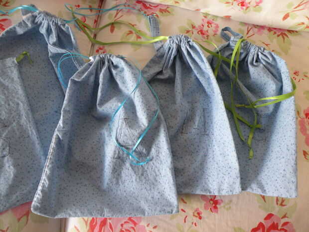 Cosí bolsitas con inicial de cada huésped en él y utiliza para recoger todo el botín de la piñata y sosteniendo sus máscaras también.