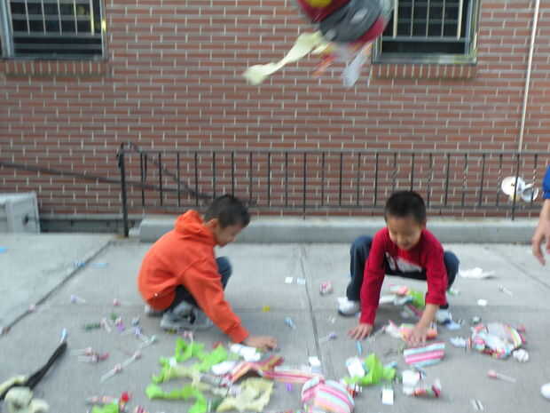hasta que la piñata se rompe y todo el botín se cae. Despegue en tiempo mínimo deje que los niños de todos los premios,