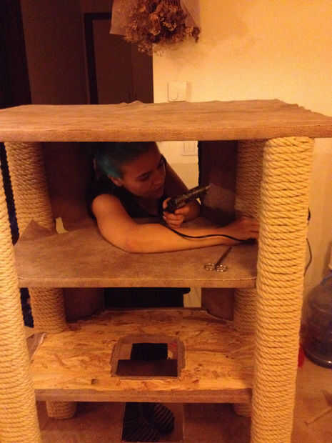 Este es mi gatito Artemis este traje de Nyan Cat (un meme de internet para ésos desconocedores)! La idea vino de solo querer tenerla a parecerse a un gato famoso de internet, y así sucedió es gris como el Nyan Cat. Usé una caja de cartón ($0.00) que