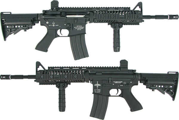 aquí es mi M4A1 nueva y mejorada. Las estadísticas para desde la última versión todavía son iguales, hay algunas diferencias estructurales. También esta versión tiene un accesorio lanzador de granadas que funciona. El lanzador de la Granada se puede