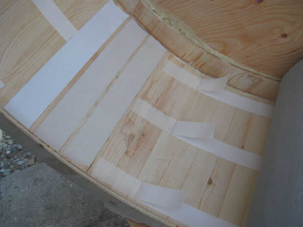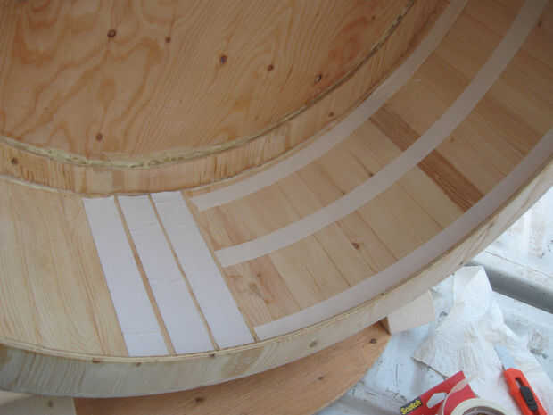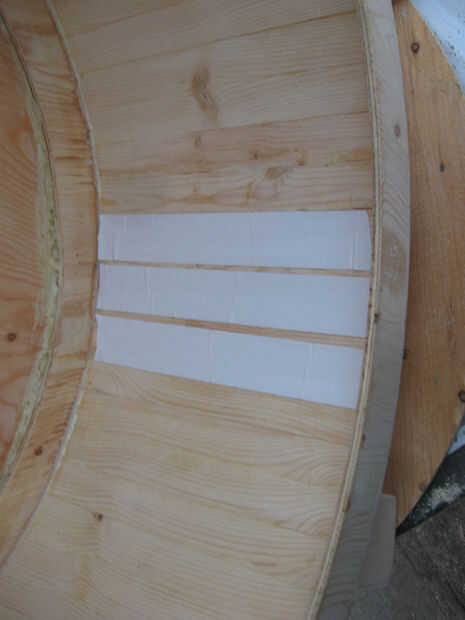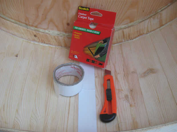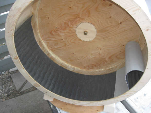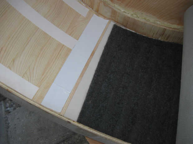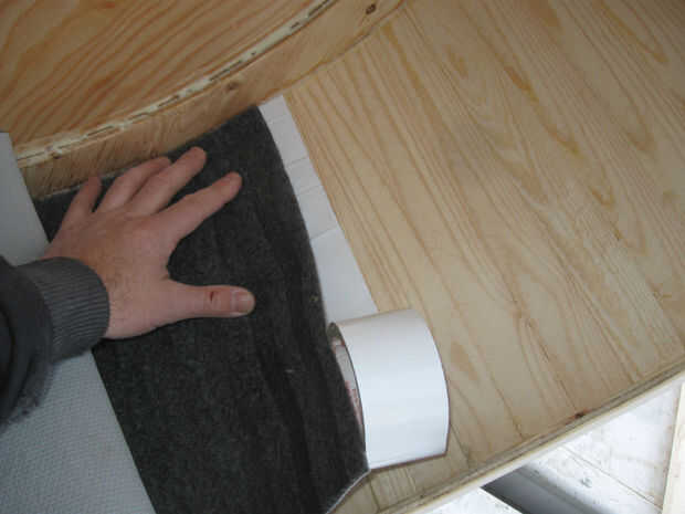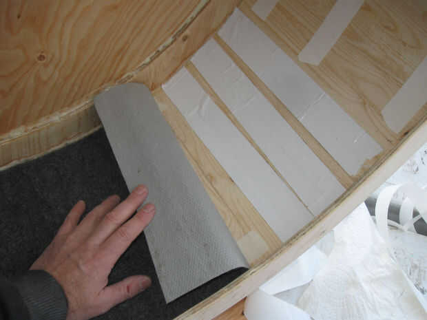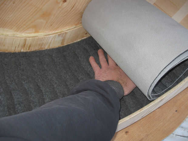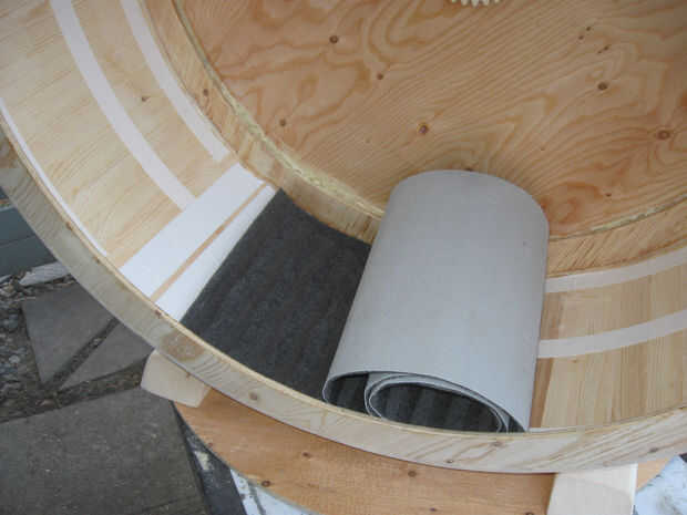 El interior no es un brainer. Adhesivo sólo cubrir una parte de atrás de una sección de la alfombra y pegarla en el interior de la noria, que funciona como un aislante y una superficie de agarre.