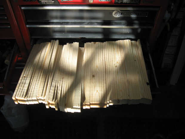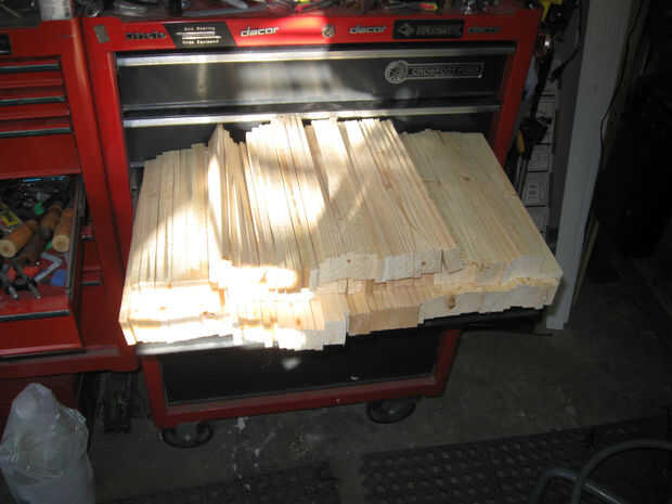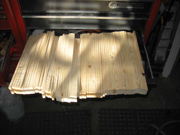 Tomé toda la pila de listón de 50 y había convertido en 150 haciendo cortes de 14 pulgadas. El resto está en mi cubo para el uso futuro.