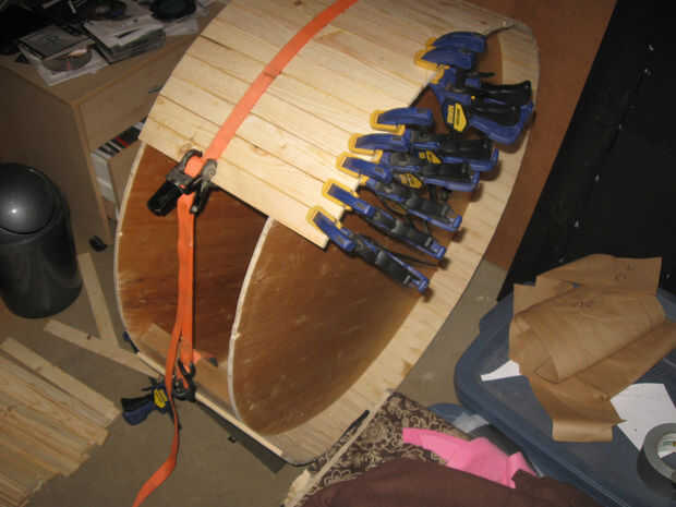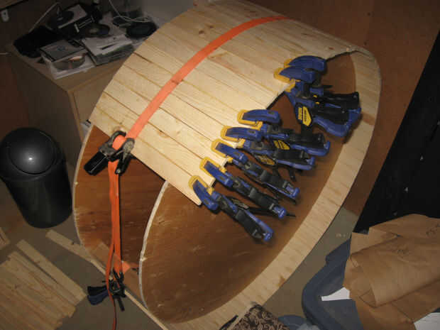 También usé algunas abrazaderas para corregir cualquier deformación del listón impar. Esto se hizo en 15 secciones a la vez.