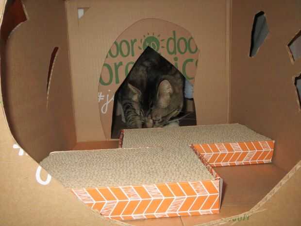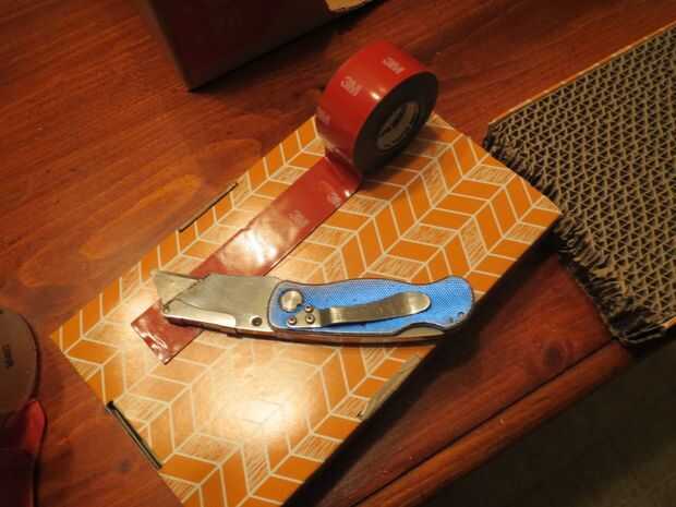 He utilizado un rascador de cartón largo cortar por la mitad y asegurado con cinta adhesiva de dos.