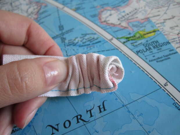 Una vez que haya activado la derecha de los tubos hacia fuera, plánchelos plana la costura quede en la parte posterior de los tubos, como se muestra en la última foto.