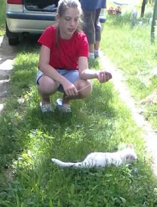 Me gusta los gatos y tengo 2 gatos y ahora tienen 7 gatitos. Son aburridos, porque debo ir a la escuela por lo que no puedo jugar con ellos. Así que cuando tuve un poco de tiempo hice un juguete y jugaba con ellos. Lo mismo como este juguete y juego con él. Espero que si hacen su gato amo demasiado.