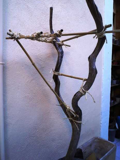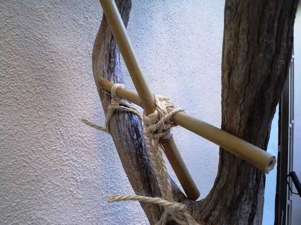 Palabras clave: tensión. Utilice la forma que el árbol te da y pequeños trozos de bambú para presión.