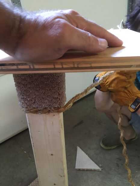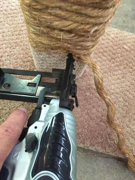 Al llegar a la parte inferior acabar con unas grapas y cortar la cuerda restante. En mi caso solo tuve unas pulgadas de la cuerda sobrante - alegre he añadido alguna alfombra en la parte superior e inferior.