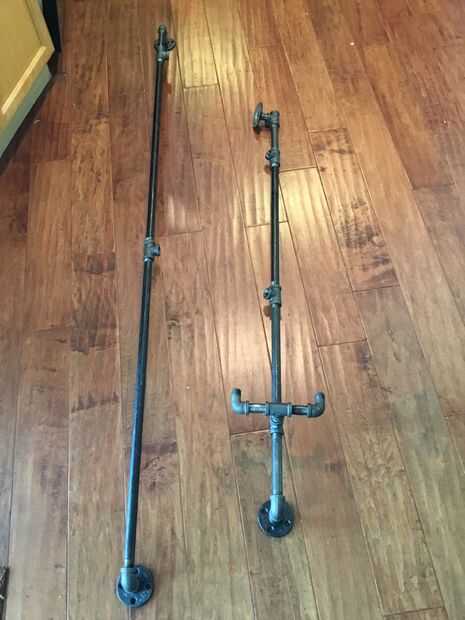 Puse los tubos hacia fuera en el piso y básicamente experimentó con diferentes combinaciones hasta que encontré uno que me gustó. Las plataformas son simplemente tablas de pino cortar para ajustar la posición. Limpiar mancha madera negro en ellos y luego limpiar inmediatamente después que le dio el look negro luz y veía bien con la pipa negra. También puse cinta del apretón en las plataformas. Esto dio a Artie mucha confianza ir arriba y abajo. Antes de eso, no estaba realmente seguro de sí mismo en él.
