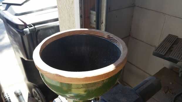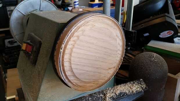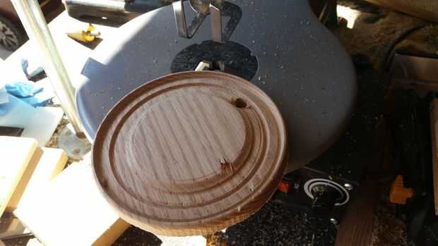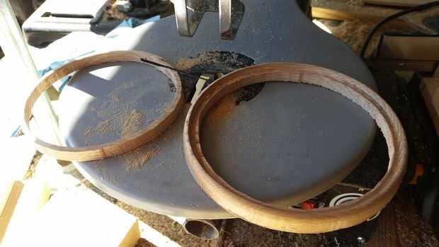 El borde fue otro asunto, que originalmente iba a presentar y suavizar el borde. Una vez que empecé, pensé un tacto más blando se vería mejor y se puso a trabajar en la fabricación de una llanta de roble rojo. Usé mi torno para hacer un perfil áspero a receso y el depósito de O2 en el pegamento. Después de eso, corte con mi sierra y lija y pulido suave. Pegado una noche y listo.
