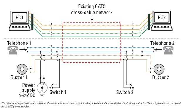 Hace ya más de un siglo y medio Alexander Graham Bell susurró las palabras "María tenía un corderito" y cambió la manera de comunicarse de la humanidad. La vida moderna es inimaginable sin un dispositivo telefónico, sea un sofisticado teléfono celular o un teléfono de pulso arcaica aún en uso en ciertas partes de la India. Si has ido totalmente digital, no tirar sus instrumentos de línea de tierra a toda prisa. Este taller le ayudará a hacer un dispositivo de intercomunicación funcional pequeña distancia. Una forma sencilla para construir un intercomunicador simple en casa es utilizar dos vieja tierra línea teléfono teléfonos, ejecute un cable entre ellos y aplicar algún poder. Un circuito improvisado puede incluir un zumbador en ambos extremos, para que la persona en el otro extremo puede ser avisada para recoger el teléfono. En primer lugar, usted necesita decidir que salas te instalará el intercomunicador. Entonces usted necesita recoger todos los materiales listados en esta página antes de entrar trabajar. Hay diferentes maneras de accionar el circuito. La primera es simplemente utilizar una batería de 9V. Sin embargo, la desventaja de esta opción es que batería se drene en ningún momento dejando la conexión intercom muertos. Como alternativa, puede alimentar el circuito con cualquier buena puro 12 V DC adaptador de corriente. Adaptador de alimentación ociosa o no utilizada de cualquier portátil es la mejor opción. No te preocupes si el nivel de voltaje no es exactamente 9 V — cualquier cosa con un voltaje de salida por debajo de 24 V hará el trabajo. Recuerde que el interfono tiene que ser alimentado en un extremo del circuito solamente. El escenario que hemos diseñado y había construido este intercomunicador incluye dos salas con ordenadores conectados en una red cross-cable CAT5. Ya que un cable de red consta de cuatro pares de cables, de los cuales sólo dos pares son utilizados por el adaptador de red, los otros dos pares no utilizados eran perfectos para nuestro propósito. Sólo requieren cuatro hilos para el intercomunicador funciona, así que si no ya tienes una red de cable de conexión de ordenadores entre pisos o habitaciones, puede utilizar cualquier cable de teléfono ordinario con cuatro núcleos o dos par. Construcción si usted planea usar un cable de red existente, (como en nuestro taller), tenga en cuenta que no son necesarios pines uno, dos, tres y seis (del conector RJ45) son utilizados por el adaptador de red mientras que el resto. Compruebe que los cables se utilizan en el cable. En nuestro caso resultó para ser el naranja y naranja-blanco, verde y verde-blanco. Usando un cortador de alambre, que necesitamos cortar y separar hacia fuera los cuatro cables restantes. Nosotros vamos ahora usando estos cuatro cables para nuestro taller. Ahora simplemente cortar el manguito del cable CAT5 con cuidado y sacar los cables no utilizados, luego cortarlas cuidadosamente. Los otros cables pueden continuar conectado al conector RJ45 y usarse para la red existente. Ahora que los cables están listos para ser usados en el taller, retuerza los extremos por lo que usted ha señalado consejos. Consulte el diagrama del circuito anterior y conectar todos los elementos, los interruptores, zumbadores y conectores RJ11. Por último, conectar cable de teléfono RJ11 gato y alimente el circuito con la batería. Ahora, el dispositivo de intercomunicación es todo listo para ser utilizado.