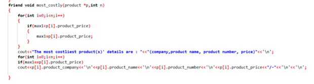 Después de esto corro otro bucle, comparando este valor en "max1" (que es el precio máximo) con el precio de cada producto, y siempre que coincida con, imprimir detalles del producto, que en esencia es imprimir los datos del producto más costoso!