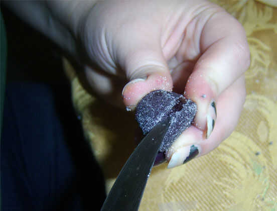 Hizo el ladrón de una grande y una pequeña Gomita negra. Corté un anillo en la grande para que se vea más como la pieza del juego. Cortó un trozo pequeño de la parte superior de la grande y la parte inferior de la pequeña para que se peguen juntos.
