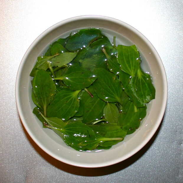 Traer las hojas dentro y remoje en agua tibia. Frote suavemente las hojas para quitar cualquier polvo o suciedad.