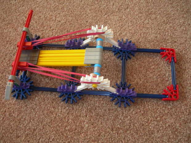 K'nex de una catapulta.Pros:-fácil de construir-robusto-portable-buen alcance, potencia y precisión-fácil de cargar y disparar-se ve un poco como una catapulta realContras:Si usted encuentra cualquiera que los Publicaremos aquí. A PM me o deja tu com