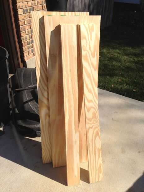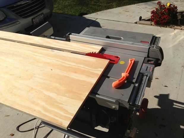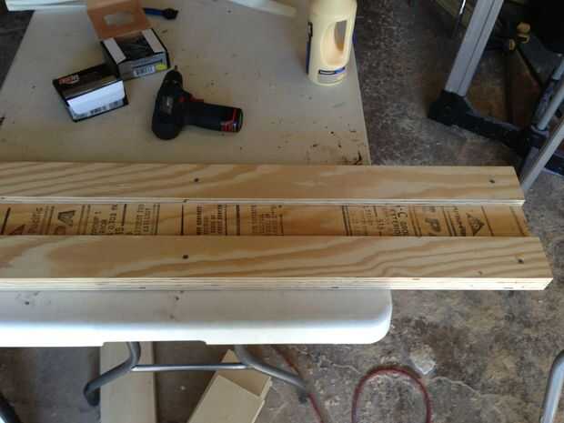 Cuando corte las secciones de la madera contrachapada a la medida hay tres piezas de madera por sección. La plataforma pedazo de sí mismo y luego dos estrechas refuerzo piezas que van a lo largo de los bordes.