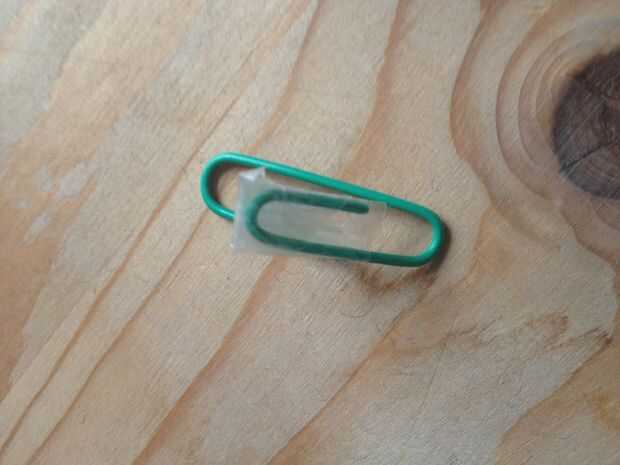lo siento no hay fotos no hay. Asilo, t tiene mucho tiempo. para esto se necesita:2 clips de papel y un par de pinzas. simplemente doblar uno de los extremos. Utilice un trozo de papel para probar.